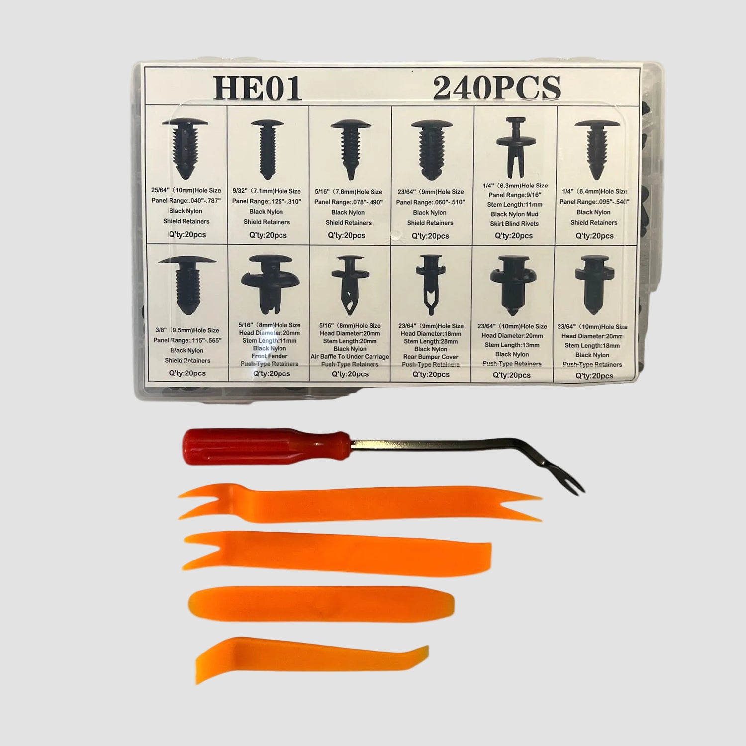 Uundværligt for enhver gør-det-selv bilentusiast! Dette omfattende sæt med 240 clips i forskellige størrelser sikrer, at du altid har den rigtige fastgørelsesløsning ved hånden, når du arbejder med bilens interiør og eksteriør.