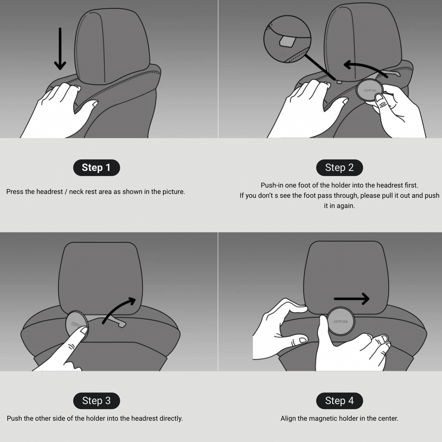 - Nem montering: Designet som en "Plug & Play"-løsning, der monteres hurtigt mellem nakkestøtte og ryglæn uden brug af værktøj.